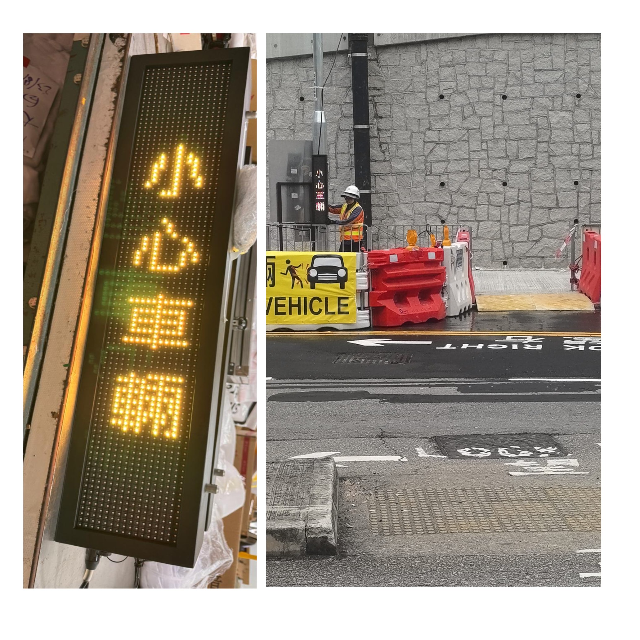 可顯示中英文數目字, 例如: 地盤出入口小心車輛 SAFETY FIRST